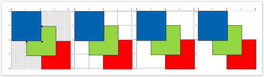 Snapping can be activated or deactivated at any time by checking or unchecking the appropriate options. Note that when both Snap objects to grid and Snap objects to guides are activated, the selected object will snap to the nearest line of either type when dragging it.