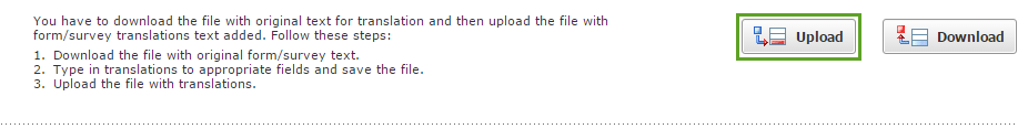6. Now on the Form translation page click "Upload" button. Select the file with translations.