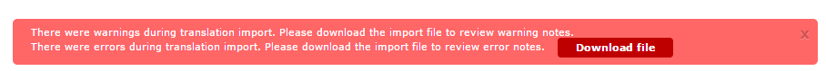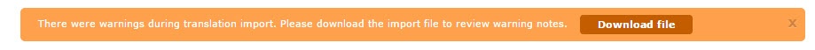 Import finished with warnings/Import finished with errors. Appropriate message will be displayed and file with warnings/errors will be available for downloading and reviewing.