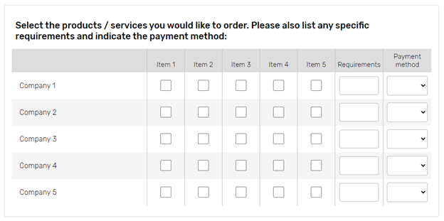 Use Case 3. Horizontal and vertical appearance of the Matrix question items