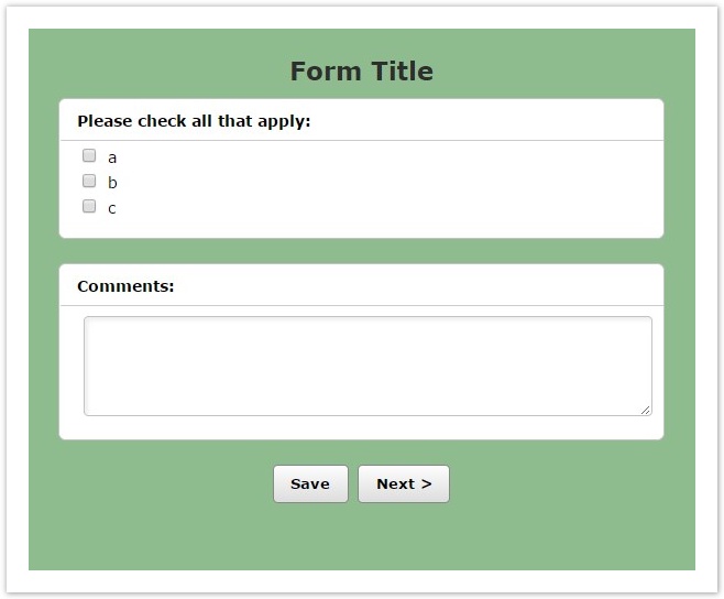 If you change the background color to dark green (hex color code: #8FBC8F), the form will look the following way: