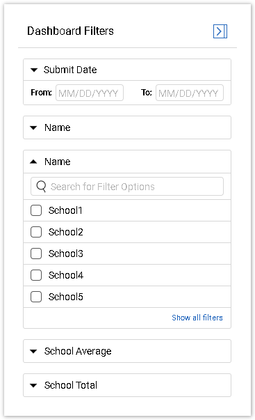 If you selected Data Models or Contact Managers as a Data Source for your Dashboard, the Submit Date filter is unavailable.